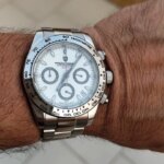 I don’t think I’ll ever be able to buy a daytona so I went for this pagani. I have to say, it’s amazing. Glass is great, movement is quiet, the buttons are a tiny but finnicky since the screw down, but overall feel great as well. There is also a surprising weight to the watch that makes it feel more expensive that it actually is. The styling is obviously beautiful. I haven’t really tested the lume yet but it’s not a huge concern for me personally. The metal bracelet wasn’t for me, I immediately swapped it out, but that’s up to preference. Overall this is a fantastic watch, and if you can catch this on sale like I did- it cannot be matched in value ????