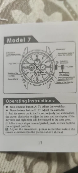 Looks great. Lovely presentation and decent instructions. Very happy. It took men a moment to realise that the hidden button step the date and day each time you press them. Once done, it’s easy.